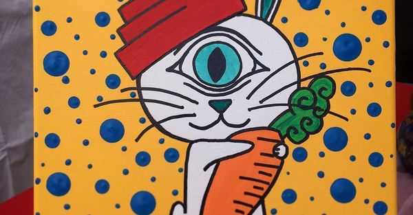 One of Inocente’s early Bunny paintings. |