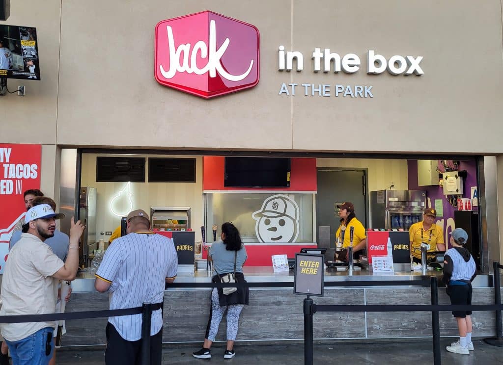 HAMBURGERS FOR HOME RUNS: You may have seen the TV commercials for Jack In The Box that run during Padres games. The deal–the day after a game in which a Padres player hits a homer, you can order a Jumbo Jack for free (with the purchase of a $2.99 large drink). Didja know there’s a Jack In The Box concession booth inside Petco Park? It’s on the third level in right field. No, they don’t sell Jumbo Jacks. “If we did that we’d be swamped,” a JITB concession stand worker told me.
