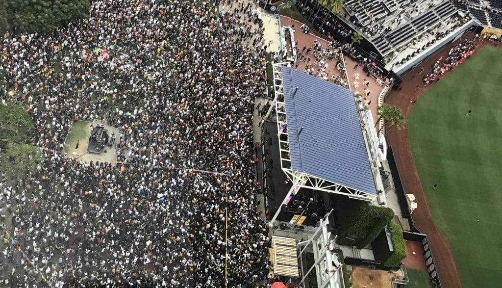 As reported extensively in The San Diego Sun, East Village residents who live near Petco Park are up in arms about alleged city noise ordinance violations and excessive lighting during music concerts held at Gallagher Square. Formerly called The Park at the Park, Gallagher Square was established as a public green space. Events there are managed by the San Diego Padres. Concert revenue is split between the Padres (70%) and the city (30%).