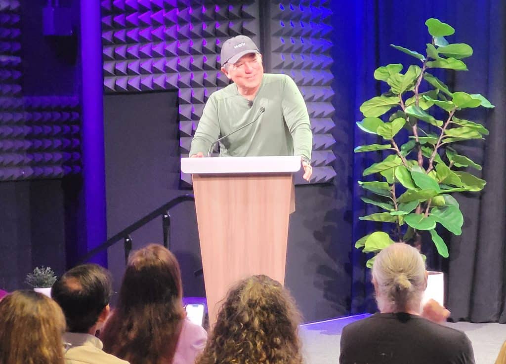The 71-year-old former “evangelist” for Apple, who now preaches the word of Canva, tossed some jargon salad during a February 23 presentation at UC San Diego Park & Market. He was keynoteing the official launch of a Division of Extended Studies program. UC Your Future is for adults aged 45 to 65+ looking to explore new careers and face the next phase of professional life with confidence.