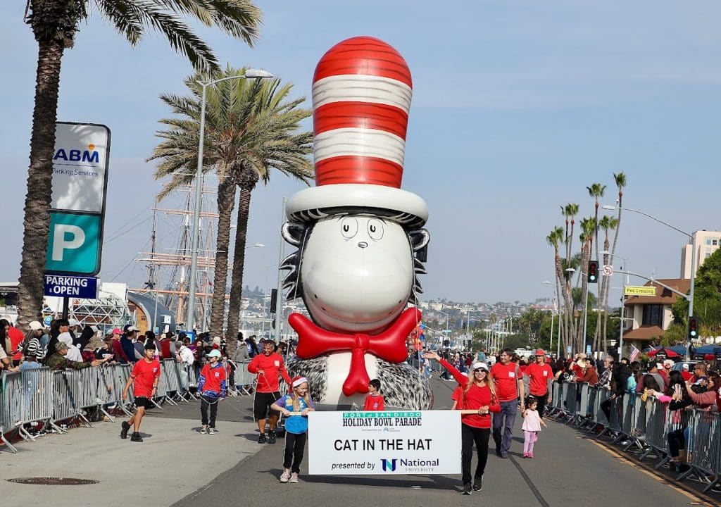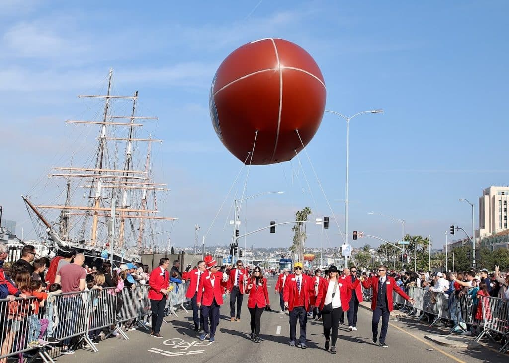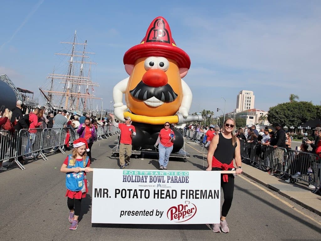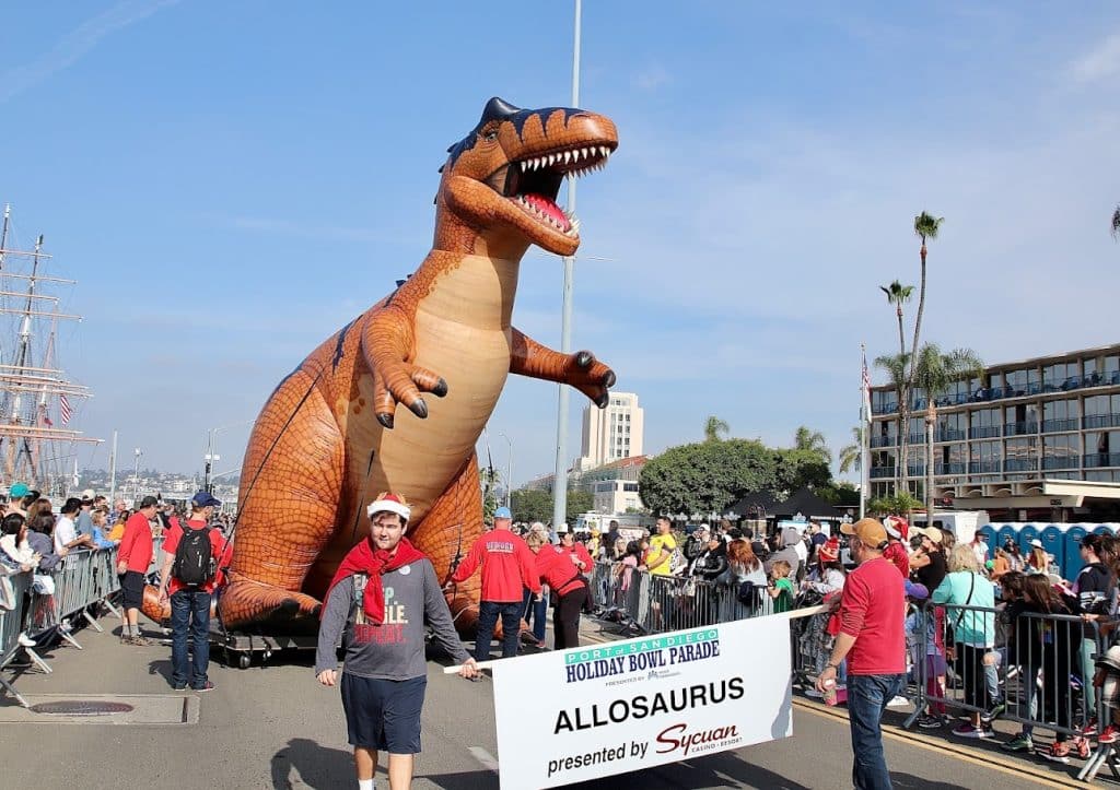 The parade precedes the 44th annual DIRECTV Holiday Bowl college football game (previously named after title sponsor San Diego County Credit Union).