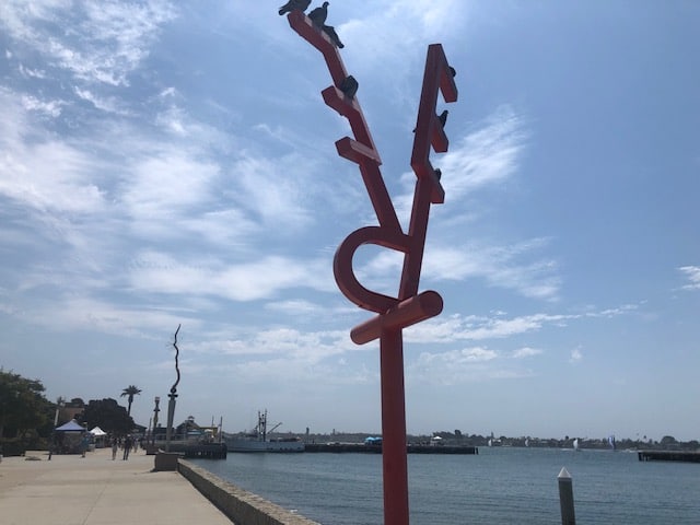 Art along the Waterfront. Shortly after passing the Tuna Harbor Dockside Market, there are a series of art pieces lining the walkway.